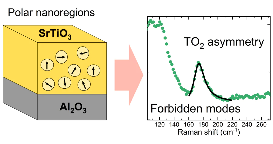 Recently, we reported that incorporation of intermediate layers of AlFeO3 (AFO) between thin layers of STO in STO/AFO superlattice mitigates the suppression of the terahertz (THz) dielectric response of the STO\cite{Paper-15}. The AFO was selected as a material for intermediate layers due to its transparency in THz frequency range, so that the dielectric response of the heterostructure is determined exclusively by STO properties. AFO ceramics are known to exhibit multiferroic properties\cite{Paper-16,Paper-17}. They possess a ferrimagnetic structure with a Neel temperature \( T_N=250 \) K and undergo a ferroelectric phase transition at \( T_P=103 \) K [17]. We proposed two main mechanisms to explain the observed enhancement of the dielectric response, namely, different thermal strain on the STO/AFO and STO/Al2O3 interfaces and formation of polar nanoregions (PNRs) within the STO layers. The temperature-dependent change in the dielectric constant through a strain-related mechanism is caused by an increase in the ferroelectric transition temperature \cite{Paper-18}. The formation of PNRs in STO thin films leads to a substantial increase in the TO1 mode frequency \cite{Paper-19}, which, in turn, leads to a dramatic decrease in the mode’s contribution to the static permittivity. TO1 mode is the ferroelectric soft mode of STO and contributes up to 99% of its static permittivity\cite{Paper-12}, meaning that the static permittivity is affected accordingly. The accumulation of thermal strain is self-evident given that the growth temperature is significantly higher than the ambient temperature and significantly lower than the melting points of STO and AFO. The existence of PNRs, however, needs substantial evidence. One of the hallmarks of the PNRs formation in STO is the emergence of symmetry-forbidden first order vibrational peaks in Raman spectra \cite{Paper-20}.